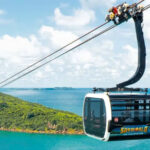 Flying high on the world’s longest over-sea cable car from Thom Island.